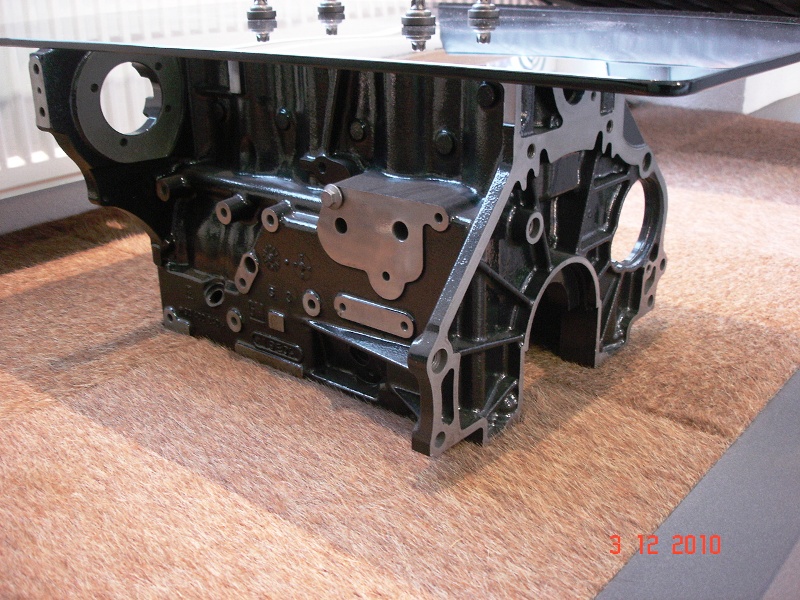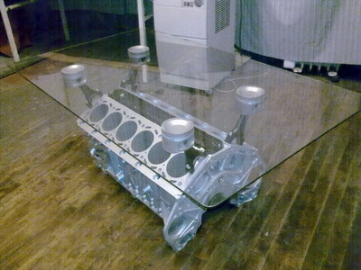 Olen teinud peaaegu samasuguse klaaslaua nagu eelpool pildil, Saab 2,2 disla plokist. Väga kena jäi.