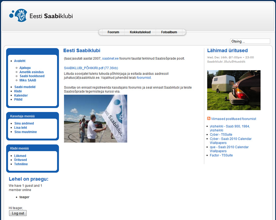Huvitav kas selline teema juba on kuskil. Igatahes tekkis mõte, et miks mitte panna www.saabiklubi.ee esilehele seda sama süsteemi, mis on www.saabnet.ee lehel, et avalehel olles on näha kõik uued teemad ja viimased postitused. Selle asemel, et hoida seal teksti "liikmed" ja mingi liitumise kraam. Ons võimalik?