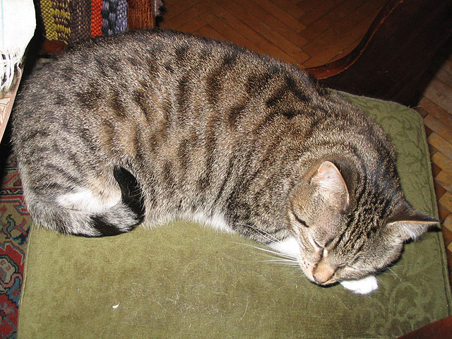 Suur inimese sõber on.Mind öösiti see vahest häirib,sest talle meeldivad mu varbad,kui need teki alt välja jäävad.Ja tal on mingeid võidajamisi vahest vaja öösel üle minu kihutada.Aga,kui sõba silma läheb,ronib kuskile külje alla silm vaevu lahti ja tuttu.Ja nõudlik on.Kui ma tema söögiisu ajal külmkapile lähenen,hakkab nõudma kohe.Eks tal on õigus ka.Oled looma võtnud,siis kuula teda.