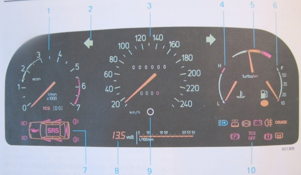TCS'i kohta on kaks märgutuld, kollane, mis asub tonnisel spidomeetri all hakkab põlema siis, kui TCS on rakendunud, st. siis, kui rattad hakkasid kaapima ja TCS keeras nüüd mootoril "kraanid kinni", et rattad enam ie kraabiks. Teine on punane ja asub turbo näidikust alla poole (oli vist seal, ei viitsi kohe vaatama kah minna). See hakkab põlema siis kui TCS'is/ABS'is on viga, kas mõni andur ei tööta või gaasiklapp ei tööta vms.