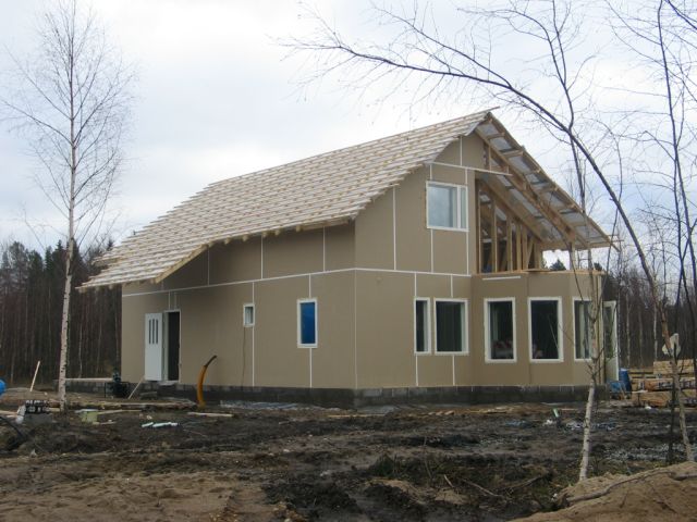 Tehasest valmis tükk on valmis tükk,sisse mida iganes,kas värv või tapeet ja välimine ots kah valmis,laudis jne.,sees soojustus ja elektri kaablid ja toosi augud. Tõstad muudkui tükid ritta,katus peale ja valma!