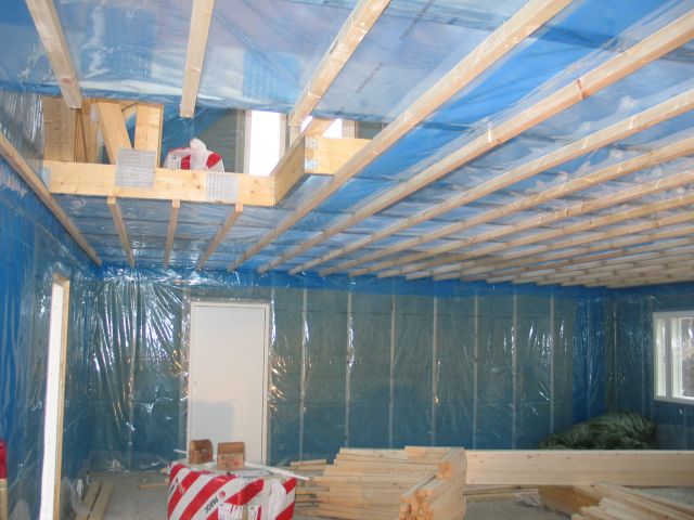 Seest pannakse ära 15 cm soojustust ja aurutõkkekile. Lisaks lüüakse ära esimese korruse roovitus, mille vahele tuleb hiljem endal soojustus panna. See jäetakse selleks, et saaks kommunikatsioone vedada. Samuti pannakse ära vahelae soojustus, muu tuleb II korrusel endal teha (katuse tuuletõke+katuse ja seinte soojustus ja tuuletõkkekile. Soojustusmaterjal ja tuuletõkkeplaat on Kastelli poolt.