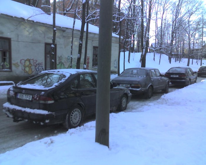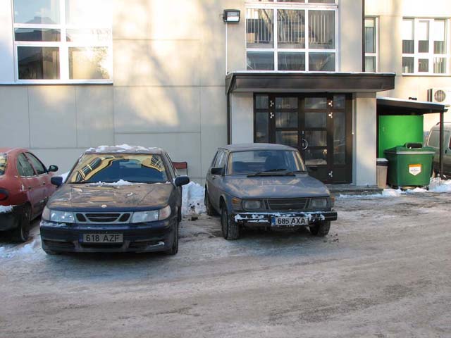 Võtan omaks, parkisin selle üsna jäätunud klassiku ette (küll Saab Saabi tunneb). Tagumine on ehk Garu oma, minust jäi ta küll Riigikohtu kõrvale parkima veel.