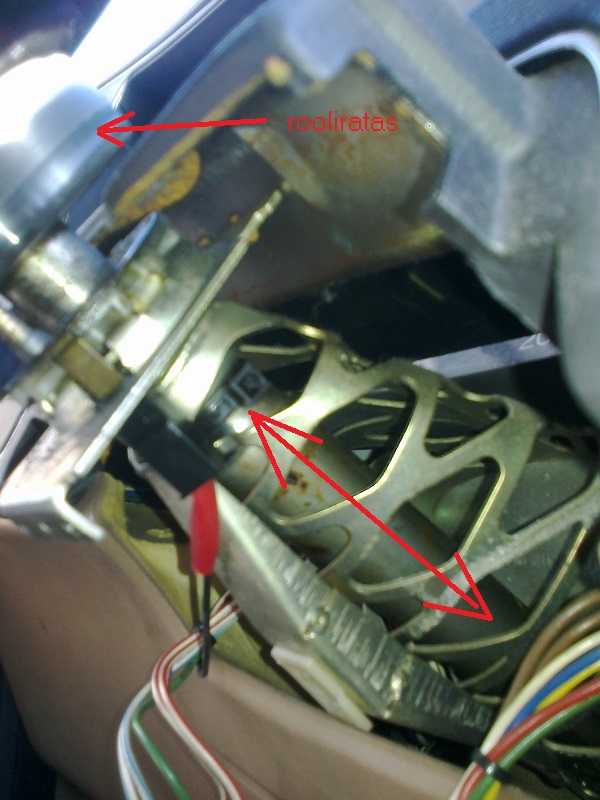 4. panin 4-5 kaablivitsa ülemise laagri taha. Tulemus on rahuldav. Nüüd saab ennast näiteks roolist kinni hoides tooliga ette poole sõidutada ilma et signaal või suunatulede automaatne väljalülitamine töö lõpetaks...