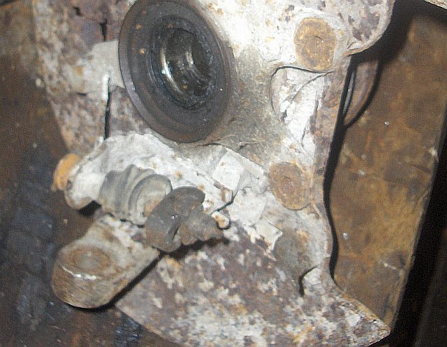 käsipiduri klotsid; tavaliselt automaatne reguleerija lõpuni kruttind, või kinni roostatand,