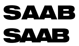 laadisin ülesse saabi fondi S tähe ja vastuseks oli Helvetica 73 bold font ja veel teisigi Helvetica ja samuti Pragmatica fonte. Pragmatical S tähe ülemine osa veidi pisem. Seega pakuks, et SAABi font on Helvetica ja font pisut madalamaks surutud (teisisõnu pikemaks venitatud)