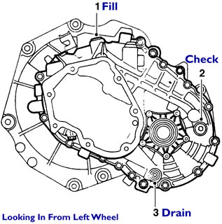 3. Drain the gearbox (plug 3).