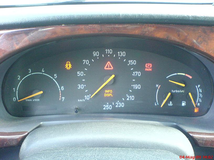 Oskab keegi äkki aidata. Nimelt on probleemiks juhi armatuurlaua näidikud, mis vahepeal otsustavad ennast välja lülitada ning mingi hetk siis mõtlevad jälle tööle hakata. Mitte töötades põleb infodisplay, kässari, parkimise ja uste andurite tuled. Kõik muud näidkud kiirus, tahho-, odomeeter, turbo jm ei tööta. Lisasin ka pildi.