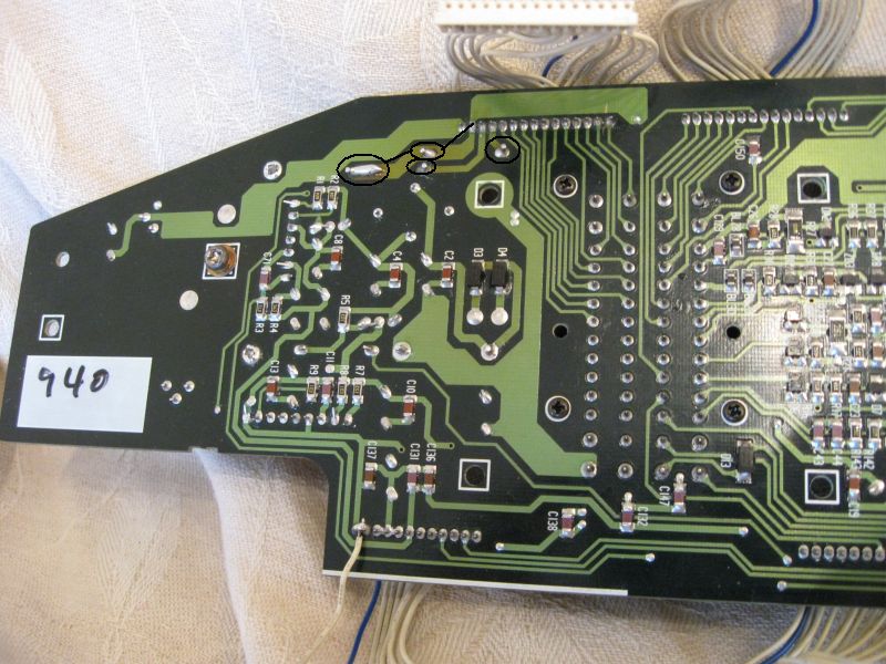Jah, ega see keeruline skeem ei ole. Näidikute plokk koosneb tegelikult kahest trükiplaadi, mis on omavahel pistikutega ühendatud. Kuna mina sain kohe auto küljes modides aru, et viga oli suure radikaga trükiplaadis, siis ma teist lahti kangutama ei hakanudk. Põhimõtteliselt tagantjärgi tarkus on jah, et esimesel korral oleks pidanud kõik selle plaadi jooted üle käima, kuna aga osa joote kohti tundus olevat radikas lahti raputanud, siis ma kõiki esimesel korral üle ei käinud. Jootsin suuremad ja ligipääsetavamad üle. Tunniga saab kindlasti hakkama.