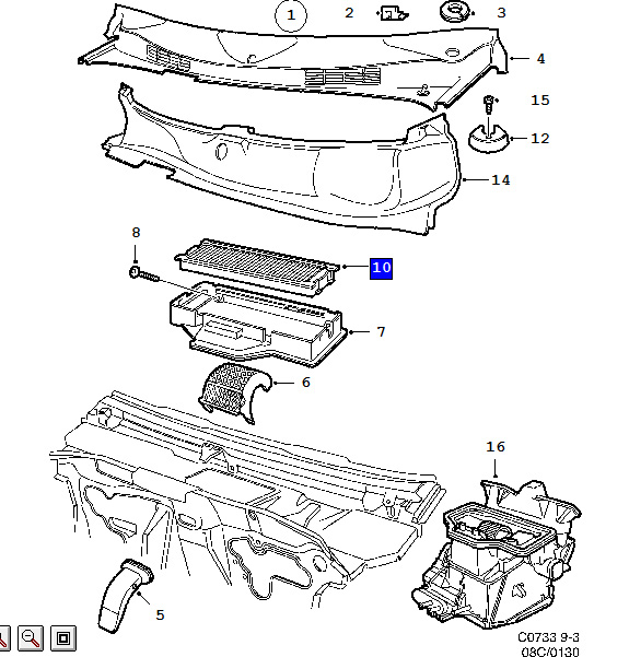 Saab 9-3 Salongi filtri asukoht