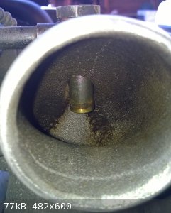 Siis võtsin ülemise mootori kaane küljest suure vooliku lahti (crank ventilation vist) ja sealt seest vaatas vastu miskine räme sodi, kuid mitte ummistus. Siis tekkis teadmine, et sellised purutükid liiguvad mööda õlitust ringi, siis on midagi ikkagi umbes. Vooliku otsas on plastmassist jupp (9192949), millest väljub täis nurga all pisike ots. Voolik ja klapp jälle korras, kuid see pisike avaus, täiesti umbes. Lükkan traadiga, ei midagi. Panin siis 2mm puuri drelli otsa ja puurisin läbi. Paks pruun ja kõva ollus jäi kõik puuri külge ja auk sai jälle avatud.