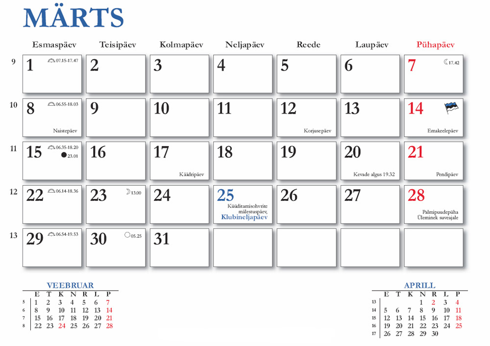 Kalendri hind on 130.- (klubiliikmele 120.-)