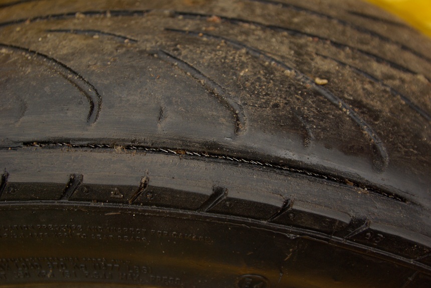 Nüüd pildid kõige hullemini kulunud vasakust esimesest rehvist.