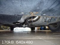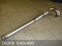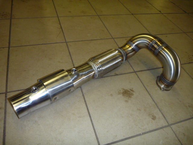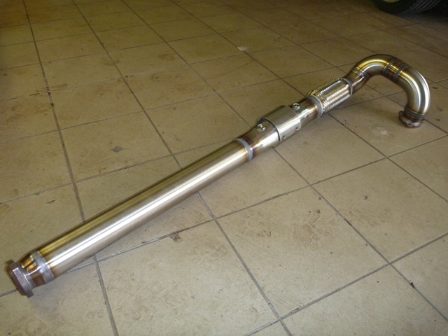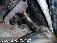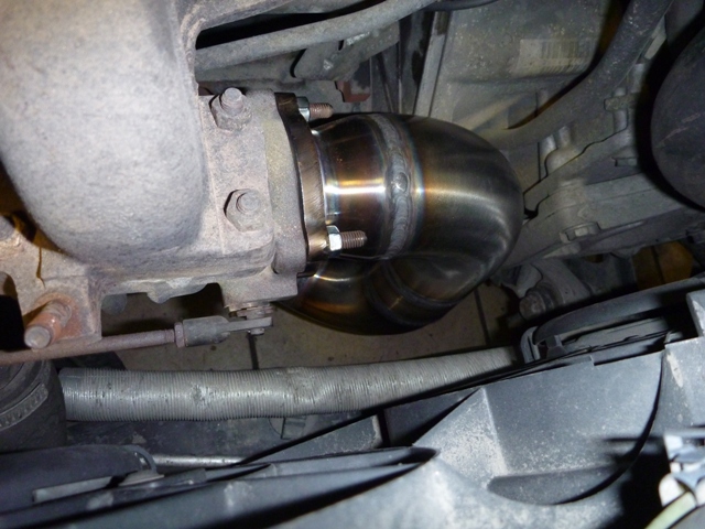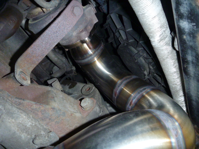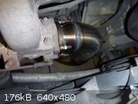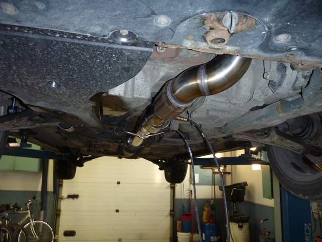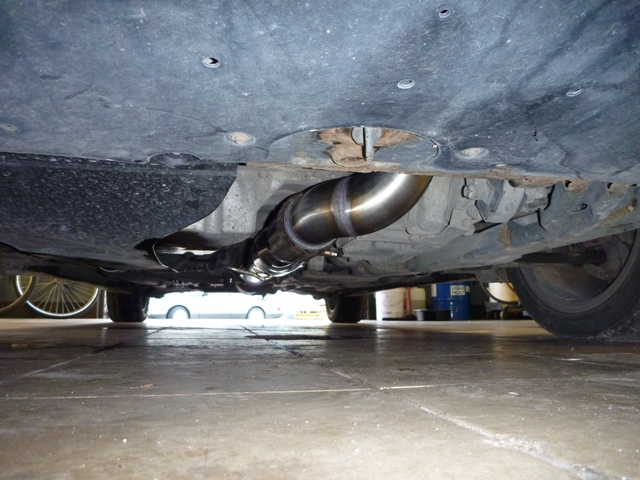 Nagu on näha, katalüsaatori järgne toru on sirge ja sama paks, kui downpipe ise. Nii palju nagu ma olen neid tuuningufirmade poolt pakutavaid Downpipesid näinud, kõikidel on peale CATi veel millegi pärast mõned põlved kasutusel ja toru pikema osa läbimõõt on väiksem. Paks ja sirge toru mahtus aga ilusti talle ettenähtud kohale, kliirens kannatada ei saanud , toru ei käi kuskile vastu ja kuumadele gaasidele enne veits väiksema ristlõikega CatBacki on rohkem ruumi jahtumiseks.