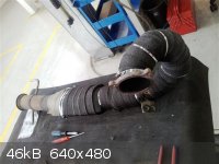 Järgmisena võtsin ette Downpipe. Töö teostamiseks läks 2 ja pool kolmetollist põlve (Tegelikult sinna mahuksid ka 3,5 tollised esimesed paar põlve, nii oleks kuumadele gaasidele rohkem ruumi), kaks ülemineku koonust 2,5-3,0 tolli, 3” toru tsirka 1,5 meetrit, sukk (tänud Olavile „Keisei Tuuning”, kes tunniga toimetas selle kohale), CAT-Backi äärik (leiti Trioniku kapi pealt) ning turboäärik sai valmistatud Herr Similar joonise järgi: http://www.saabiklubi.ee/foorum/viewthr ... #pid164674