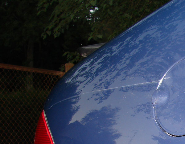 Kuigi enne ei tahtnud uskunud, nüüd olen 100 protsenti kindel, et kapott on üle värvitud. Seal on näha pisikesed mügarikud värvi all, tõenäoliselt siis mingid liivaterad vms värvi alla jäänud. Kapoti servas on näha teibi-äratõmbamise-triip ja muidugi tiivaga eri värvi.