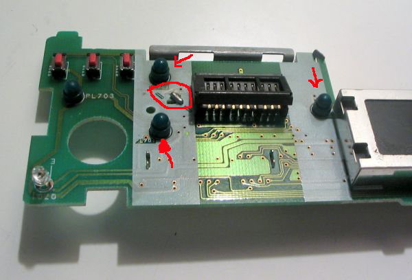 Trükkplaadilt tuleb maha joota üks metallkate mis segab ühe lambi lahtijootmist (jootekoht tähistatud punase ringiga). vahetamistvajavatele lampidele on nooled ette joonistatud