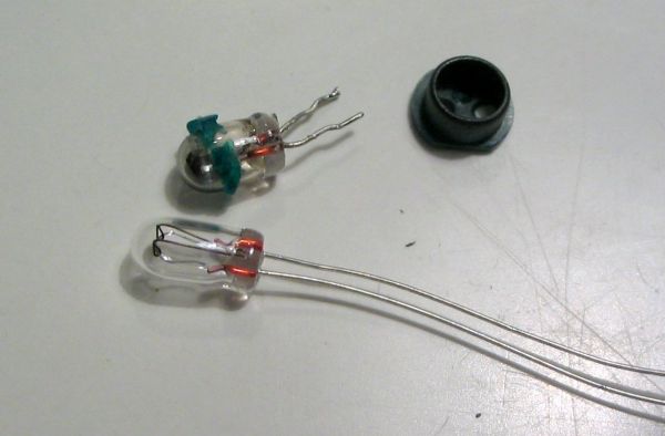 sellelt pildilt paistavad uus lamp (ligi 1mm pikem), vana lamp ja lambialune plastikosa.