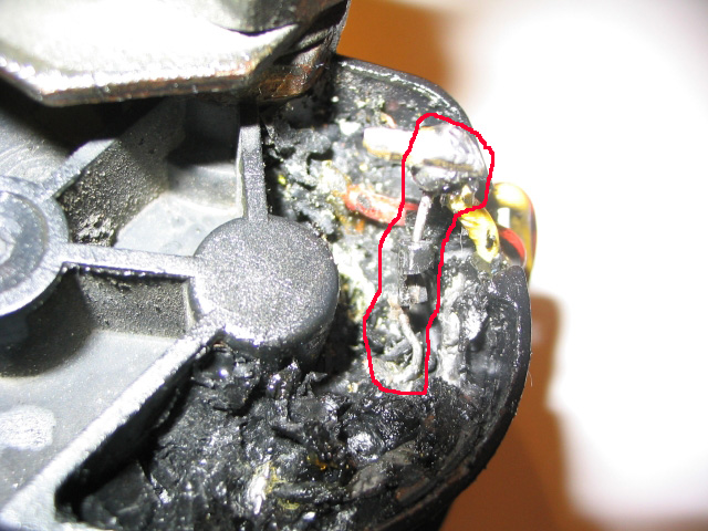 Lammutasin pisut mootorit ja leidsingi dioodi (pildil punasega ümbritsetud). Oli teine korpusesse valatud (selline kummi/silikooni moodi värk mida ikka elektroonikatööstuses valamiseks kasutatakse. nimi ei meenu).