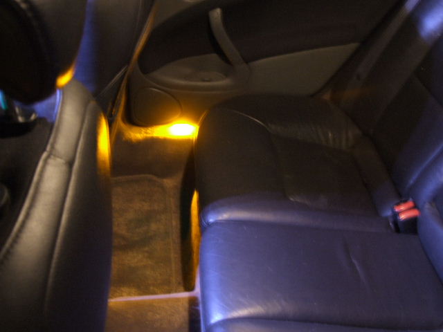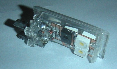 Tagaluugi sisevalgustus, kasutan külma valget tooni Led-e (1W (ostan ise sisse otse Taiwanist), kuid kasutan vaid 0,3W sellest, lihtsalt pole soojust kuhugi juhtida, see on Led-i suurim vaenlane, väheneb heledus ja ühel hetkel lihtsalt läheb läbi). 8 Led-i, millest 3 näitavad sissepoole ja 2 tagaluugi sisse (seal luugi nurkades punased läbi paistvad plastikud). Kokku võimsus 2,5W eelnenud 10W pirni asemel.