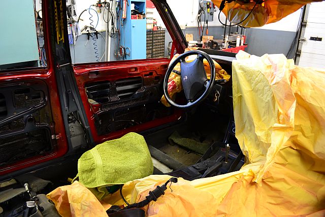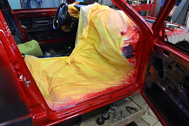 Auto on tühjaks roogitud ja Härra Timutit tegeleb usinalt värvimisega.