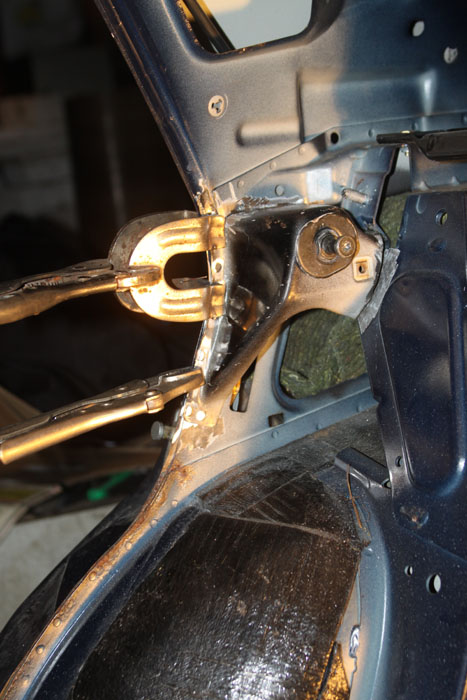 Nende poltide peale, mis sedaani seljatuge hoiavad.Need poldid on näha selle keevitatava CS-i tüki kohal.Ma arvasin, et siis täidab ta täpselt seda funktiooni, mida seljatugi.Amordikannude jaoks ei tohiks ta nii kõrgele üles tõusta (aknalauani) ja siis ei ole tal enam erilist mõtet.Pigem oli see teoreetiline käik, et seljatoe jäikust säilitada.Kuigi CS-i kere on ka sarnane ja seal ei ole mingit sidet kahe tiiva vahel.Kõik plekid on seal luukpäral ja sedaanil erinevad.Ja luukpäral jookseb üks sisemine tugevdusplekk pikemalt ja seepärast ma selle ette võtsingi.Kuigi on see ilmselt puhas teooria.