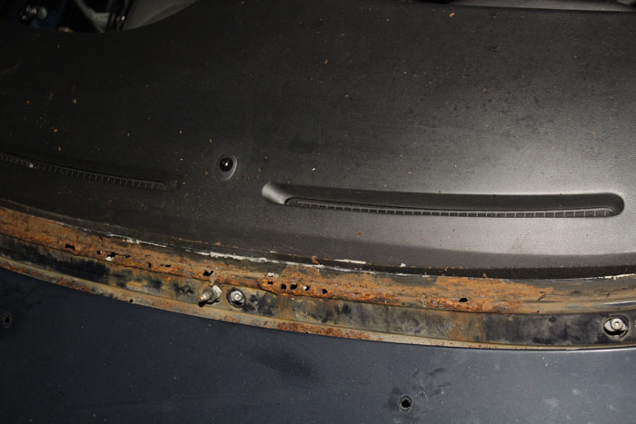 Esiklaasi alune plekk oli kojameeste juurest mäda.Selle lõikasin maha ja asendasin otse plekiga, et vesi ei saaks enam koguneda sinna klaasi alla renni.Igaks juhuks panin paksema pleki, kuna see volt omab mingit tugevust kerekonstruktsioonile.