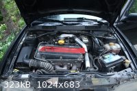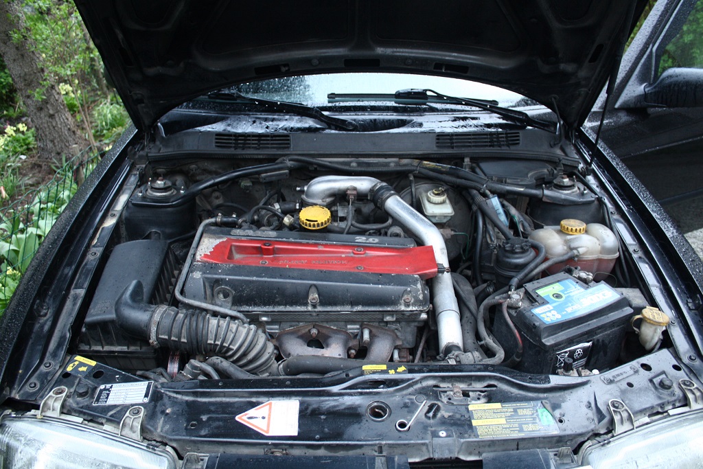 Kw on jätkuvalt 136 ja ma kahtlustan, et enamus on alles. Mootor värskelt remonditud, turbo suhteliselt uus, vaakumvoolikud on hiljuti vahetatud. Kährik (rahu tema põrmule) jättis IC-le väikese mõlgi, võimsusekadu ma ei täheldanud, ilmselt on tihe edasi. BPC-d on paar korda vahetatud, praegune toimetab kenasti. Eelmine kevad eemaldati kliimaseadme pump ja rihm asendati lühemaga: kui aastaid tagasi purunes neljandal korral mingi külma-aine toru ja freooni mulle pahinal salongi puhus, loobusin ACC remondist. Eelmised kolm toru maksid tuhat krooni tükk, ilmselt tehakse neid kullast. Talvel temast niikuinii puudust ei tunne ja suvel on mul reeglina vent väljas ja aken lahti. Teine pool plaanist oli teha ruumi Cross-flow IC-le. Ma ei tea, kas ta jõudu juurde tekitab, aga lahe näeb välja küll. Turbo on jätkuvalt Garrett, õhufilter on omal kohal karbis ja kat on kõhu all.