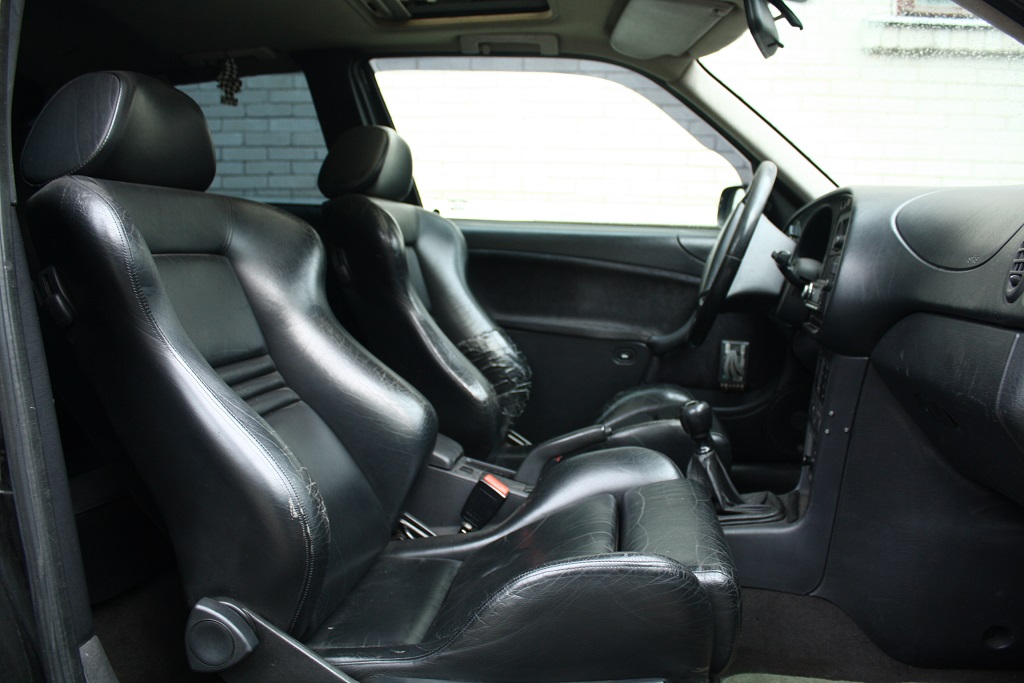 Istmed on ülimugavad. Kui taastada, siis ka ülikallid. Recaro-logodega must nahk, külgtoed on nii kõrged, et kõhna naist ei ole roolis nähagi. Mul sõber kurdab, et tal hakkab pikal sõidul selg valutama, aga mina, lühike inimene, sobin sinna sisse nagu….. igaüks lõpetab lause ise. Juhiiste on remonditud stiilse musta toruteibiga. Armatuuri kaunistab tehase poolt pandud carbon-imitatsioon ,allakukkuvat laepolstrit on siit-sealt servadest turgutatud klambripüstoliga. Peale erinevate audiolahenduste katsetamist asub armatuuris aftermarketi makk (esimene USB-auguga raadio, mis Noores Tehnikus müügile tuli) ja tooli all sillas 2x100W võimendi, mis toidab ustes olevaid kõlareid. Dashi-augud on tühjad ning taga on uued ovaalid, mis on otse maki taga ja sõidu ajal maha keeratud. Maki kohal on üks natuke liiga suur lüliti, kust võimendi tööle läheb. Et oleks Fast&Furious ja et aku seistes tühjaks ei saaks. Uksekõlarite install oli üks esimesi asju, mis ma noore autoomanikuna ette võtsin. Kasutasin põhiliselt jõudu ja saagi. Üks väheseid asju, mida ma mõtlen, et oleks võinud teisiti teha, aga kusagilt pidi ju alustama.